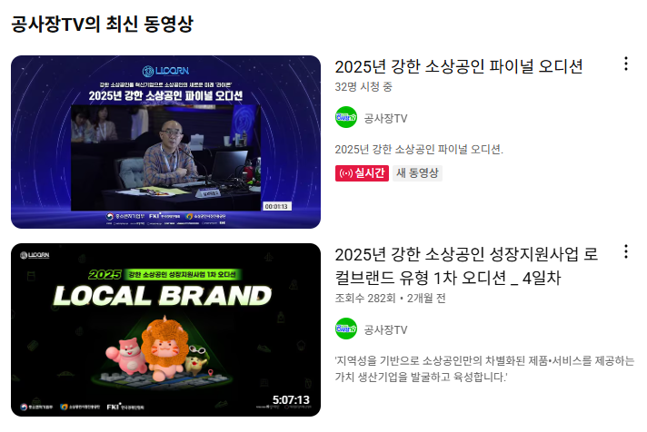 강한 소상공인 오디션 영상은 유튜브 '공사장TV'에서 실시간 시청할 수 있습니다.