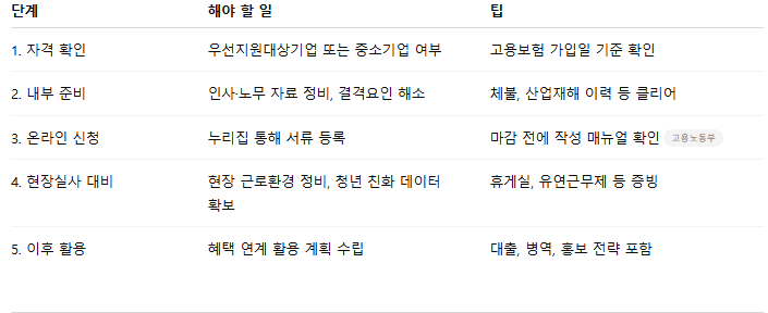청년이 먼저 찾아오는 회사를 만드는 가장 빠른 방법이자, 정부와 함께 성장할 수 있는 확실한 경로입니다.