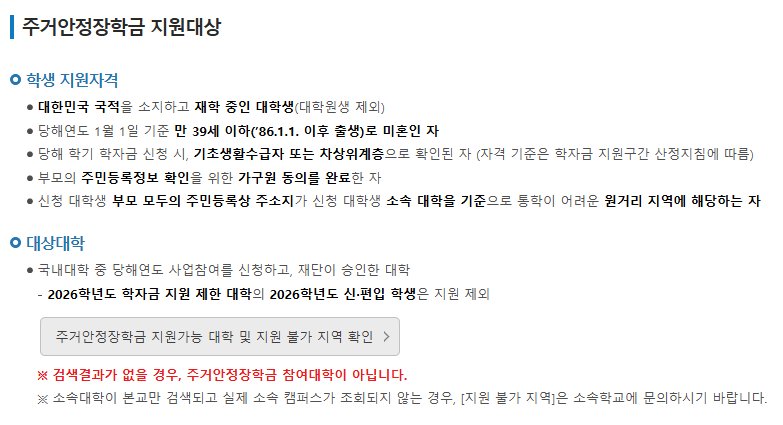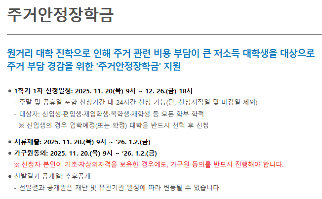 - 대상: 소득 3구간 이내 학생 중 대학 인근 주거 시설(원룸, 고시원 등) 거주자.